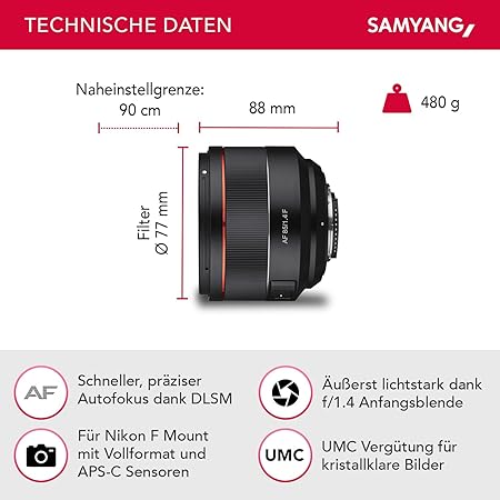 Samyang AF 85mm f/1.4 Lens for Nikon F